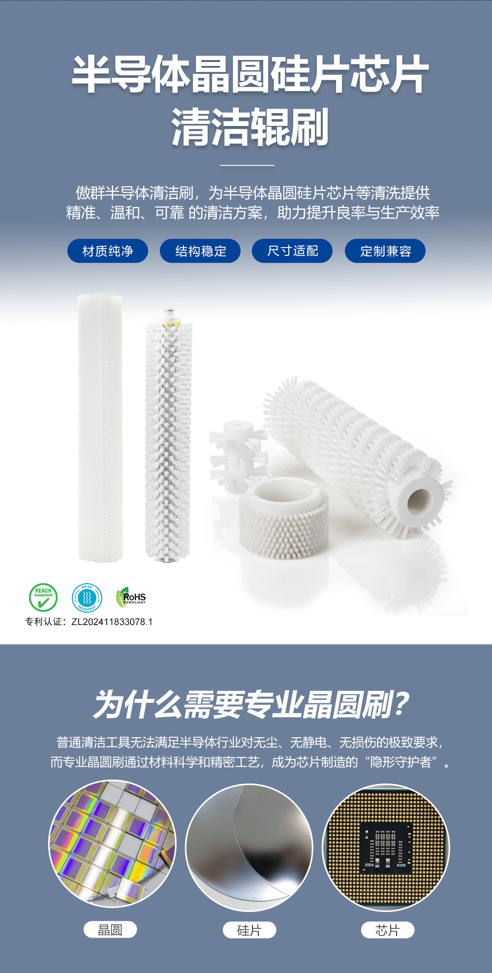 - 產品名稱:晶圓硅片芯片清潔輥刷